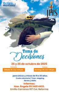 Asiste este 25 y 26 de octubre al retiro mensual “toma de decisiones”.